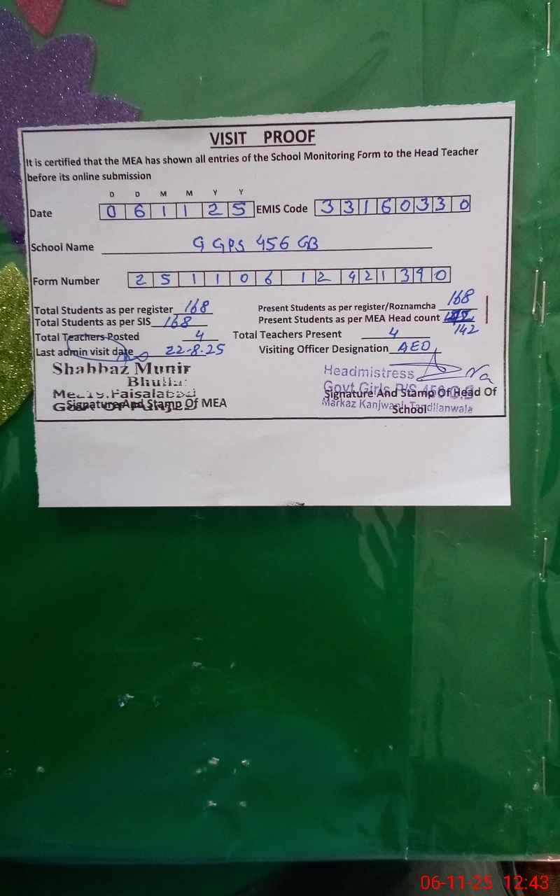 | EMIS Code: 33160330 | Name of School: GGPS 456/GB | |||