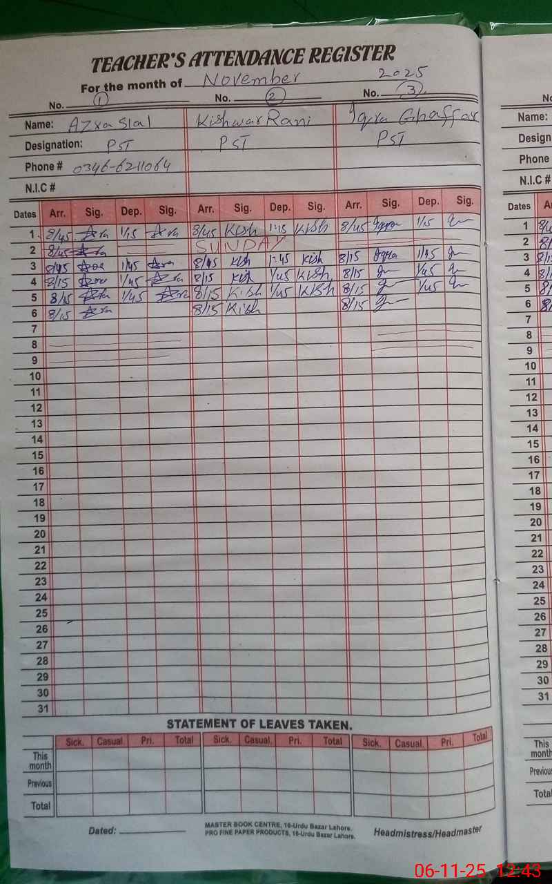 | Name: AZ**** SI**** Designation: (School Headmaster's/Headmistress's) PST Phone/Cell Number: 03**** |
