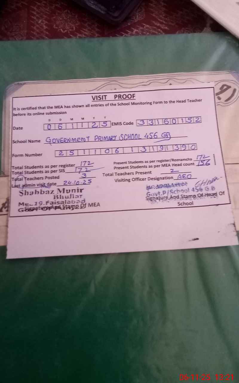 | Attendance Register | Head Teacher | MEA with School | Visit Proof |