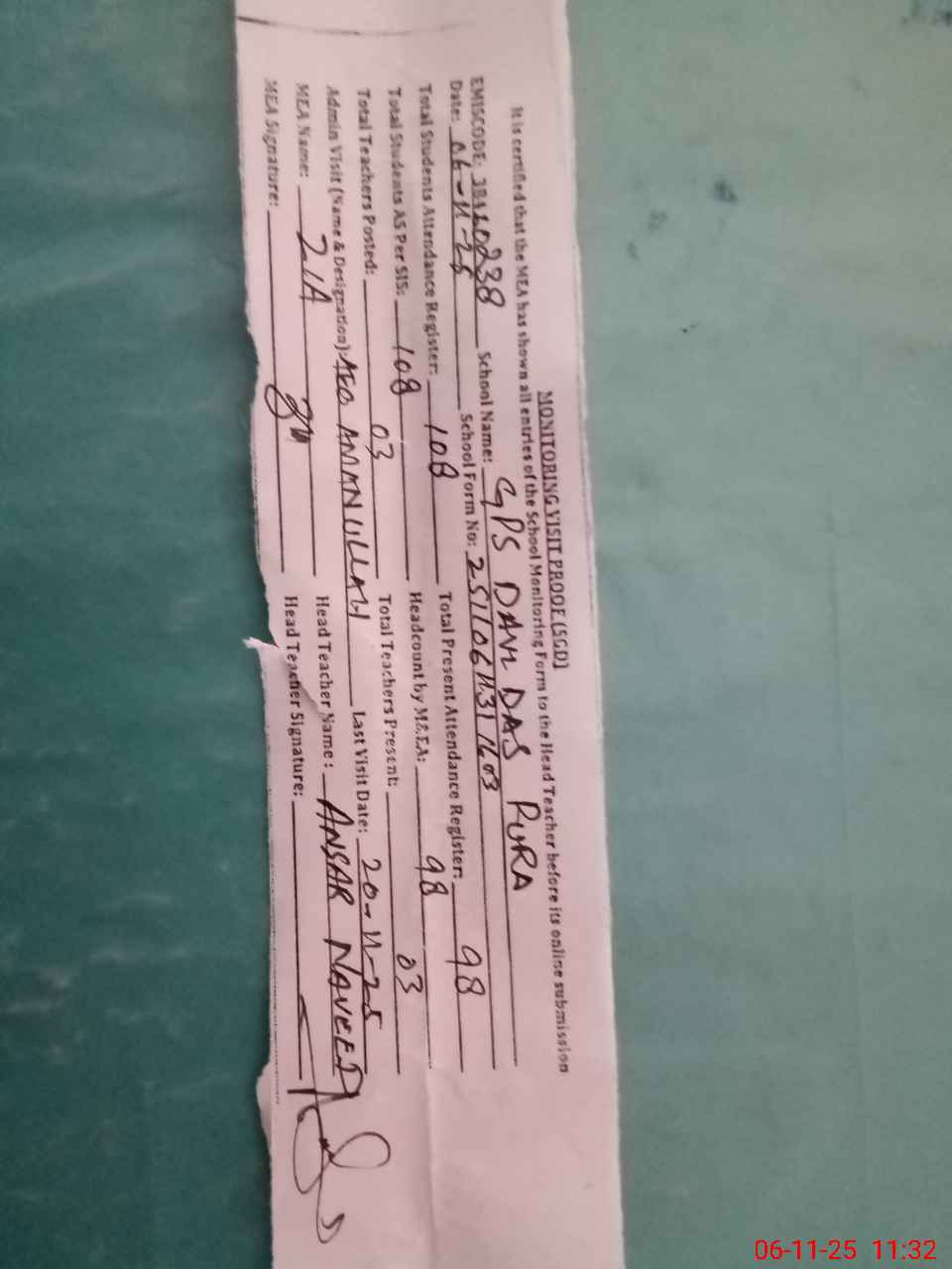 | EMIS Code: 38460238 | Name of School: GPS DAVI DAS PURA | |||