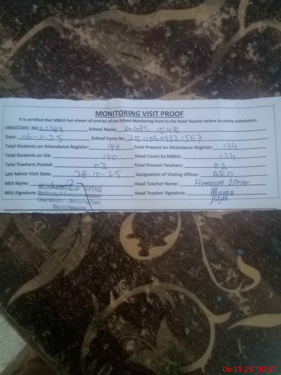 | EMIS Code: 39210388 | Name of School: GGPS 15-KB WEST | |||