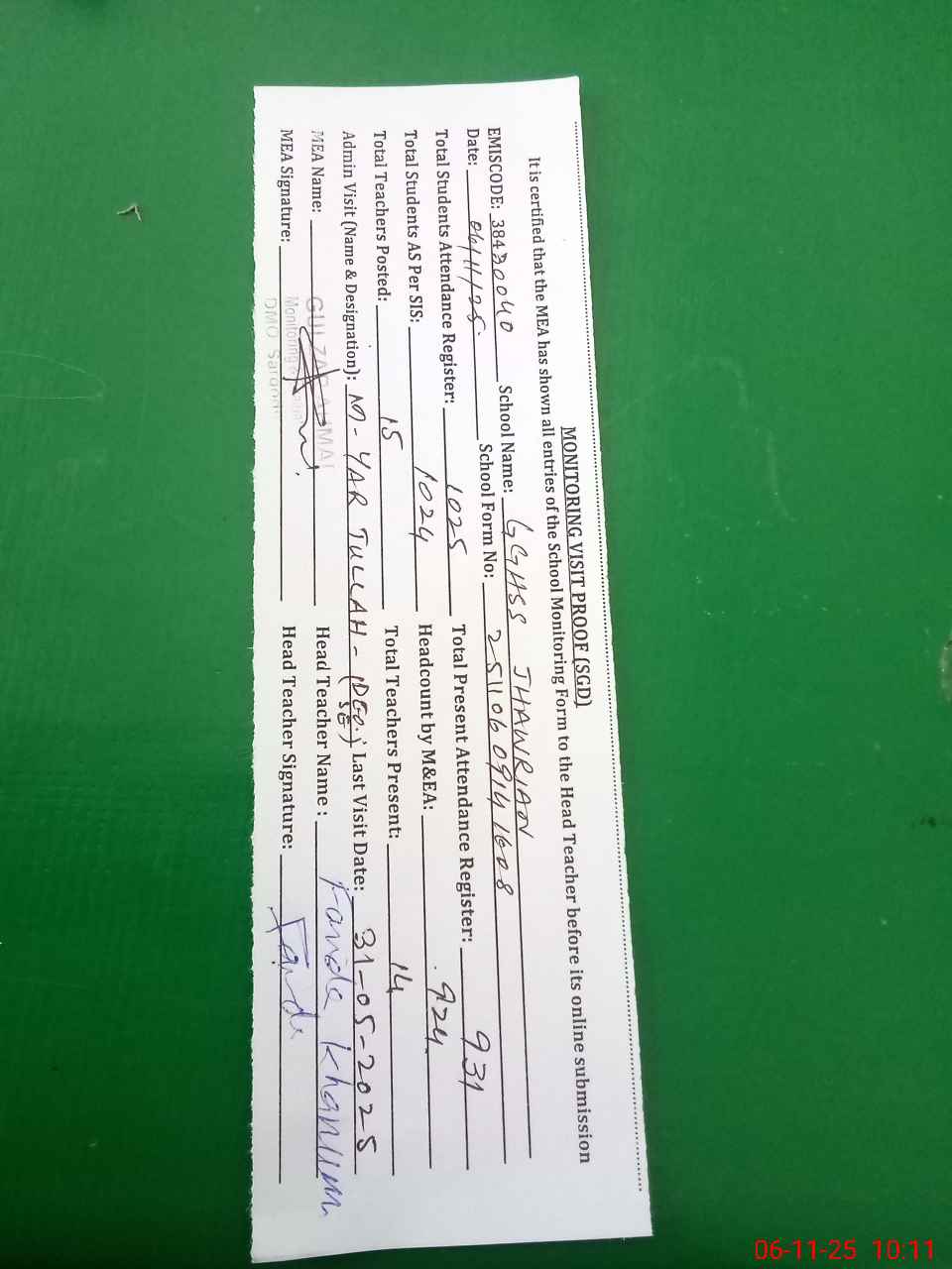 | Certified that this School was Inspected by the Undersigned MEA/DMO Today and the Information Stated Above is as Per Record. | |||||