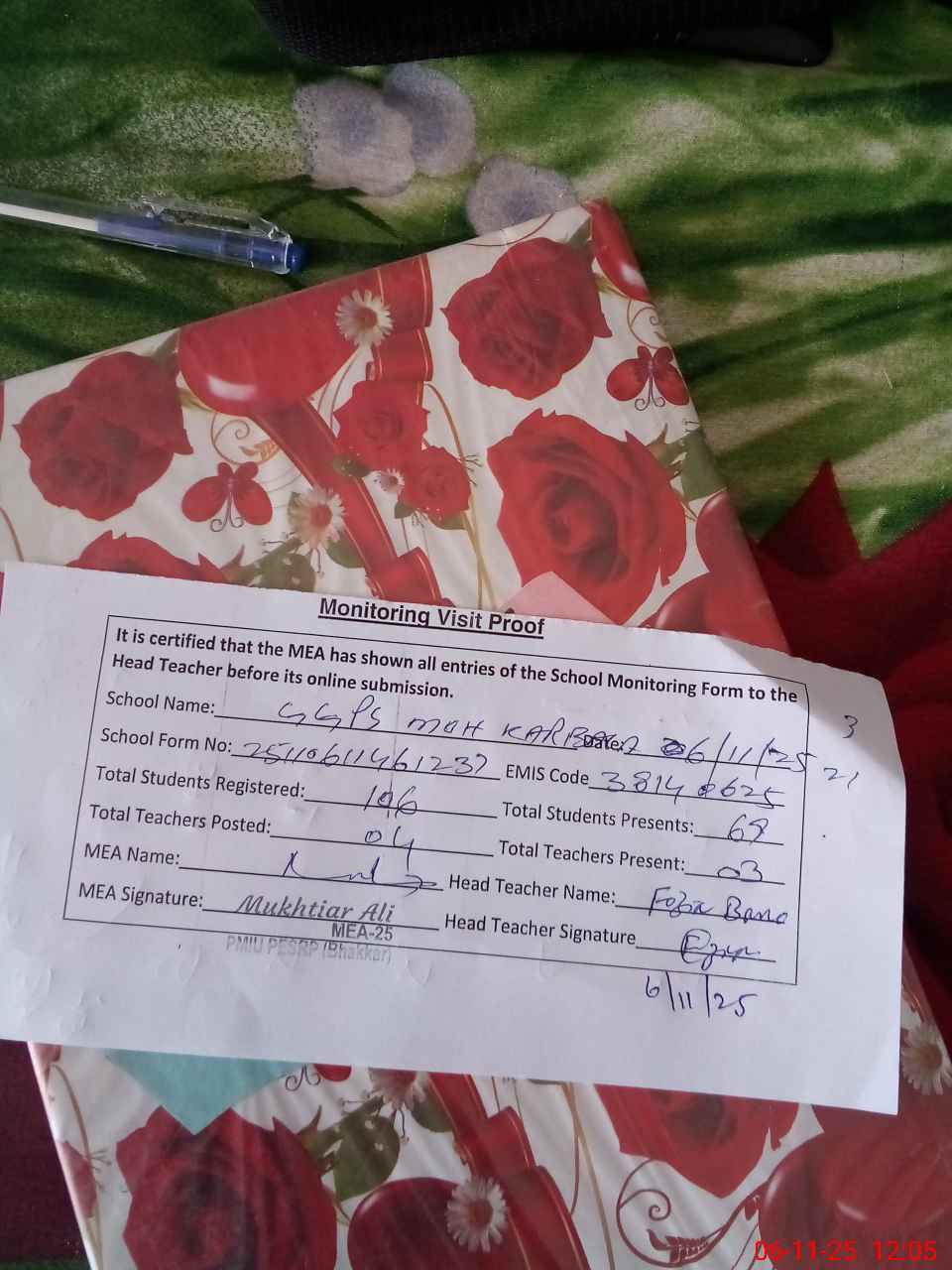 | EMIS Code: 38140625 | Name of School: GGPS MOHALLA KARBALA SADAT | |||