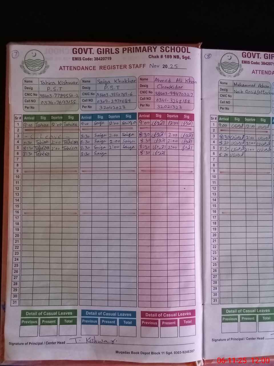 | Name: Ta**** Ki**** Designation: (School Headmaster's/Headmistress's) PST Phone/Cell Number: 03**** |