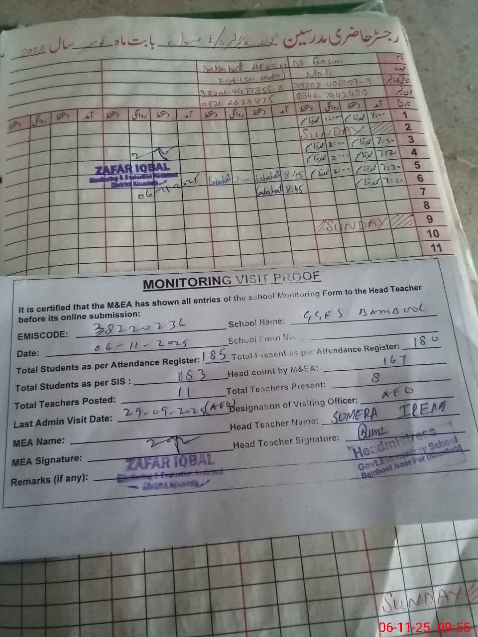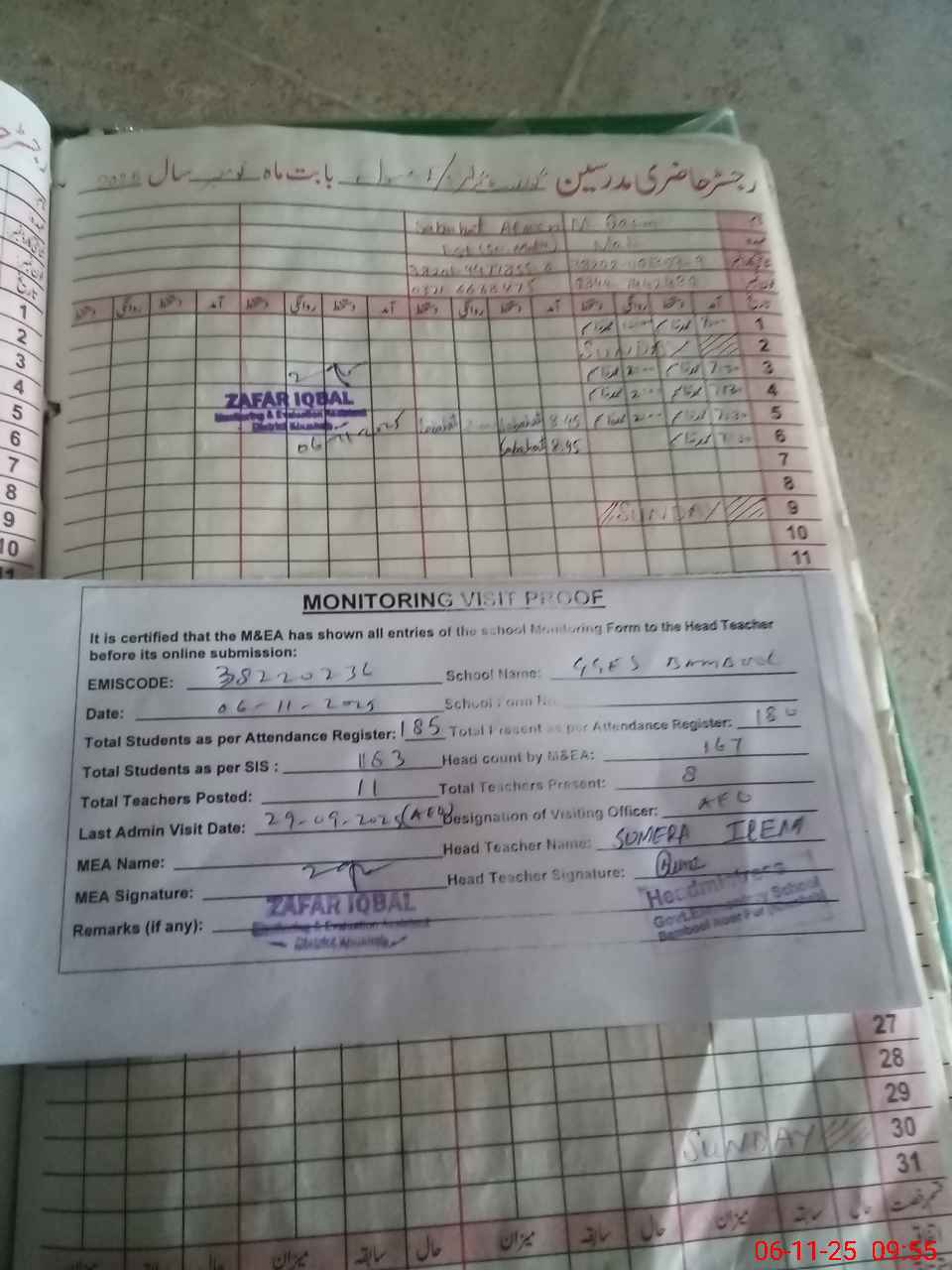 | Monitoring Date: 06-11-2025 | Start Time: 06-11-2025 09:15 AM | End Time: 06-11-2025 09:59 AM | Name of MEA: ZA**** IQ**** | |