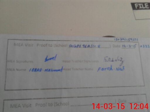 | Attendance Register | Head Teacher | MEA with School | Visit Proof |