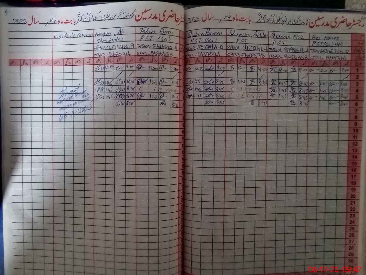 | Name: SH**** NA**** Designation: (School Headmaster's/Headmistress's) PTC/JV Phone/Cell Number: 03**** |