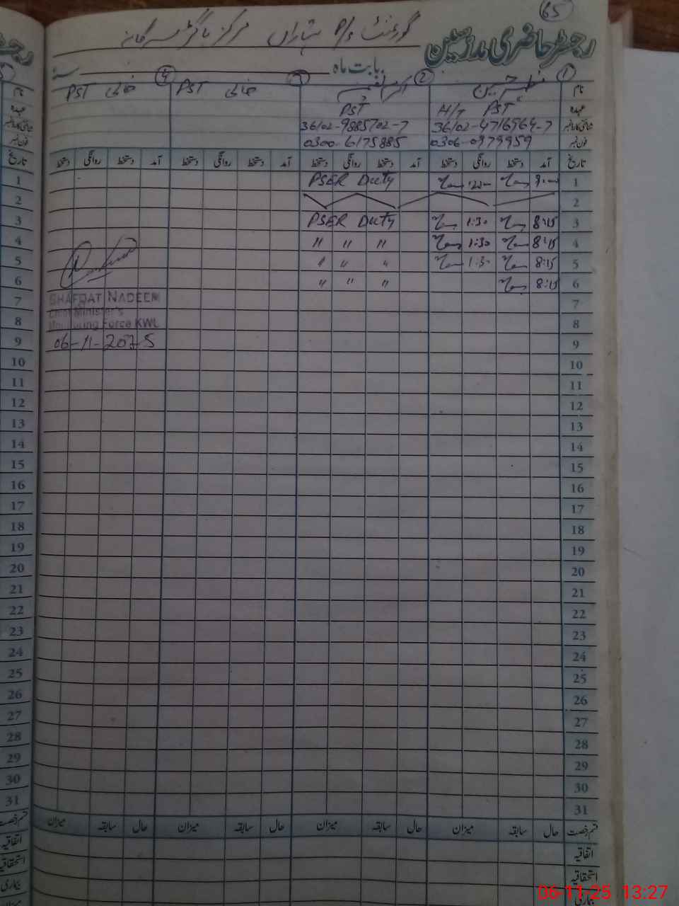 | CNIC | Full Name | Designation | R/C | Absence During Last Calender Month |