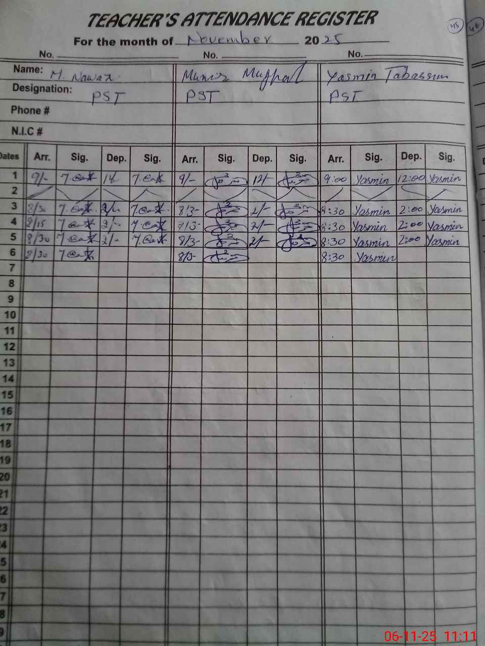 | Name: Mu**** Na**** Designation: (School Headmaster's/Headmistress's) PST Phone/Cell Number: 03**** |