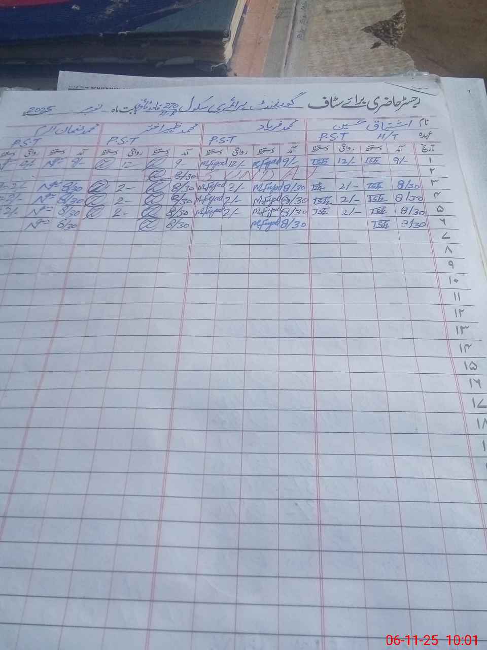 | CNIC | Full Name | Designation | R/C | Absence During Last Calender Month |