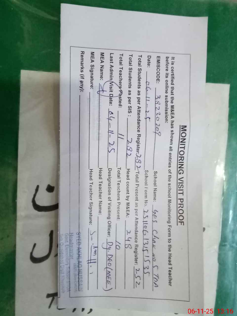 | Remarks (Use Separate Page if Required): Dy DEO visited school on 4 November 2025 | |||||