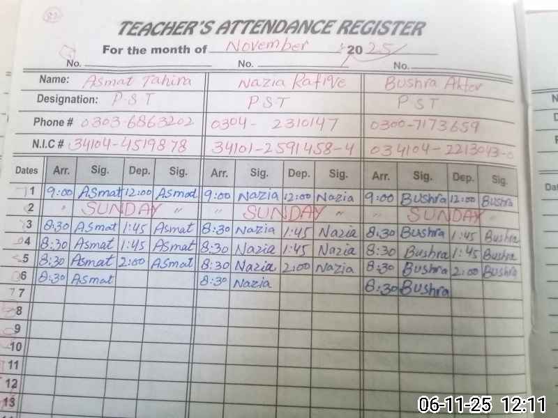 | Name: As**** Ta**** Designation: (School Headmaster's/Headmistress's) PST Phone/Cell Number: 03**** |