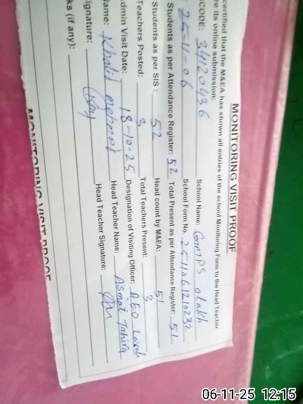 | EMIS Code: 34120436 | Name of School: GMPS OLAKH | |||