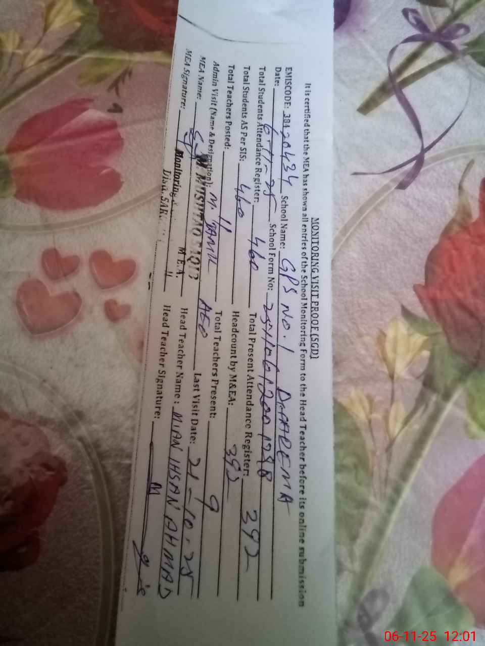 | EMIS Code: 38420434 | Name of School: GPS NO.1 DHAREMA | |||