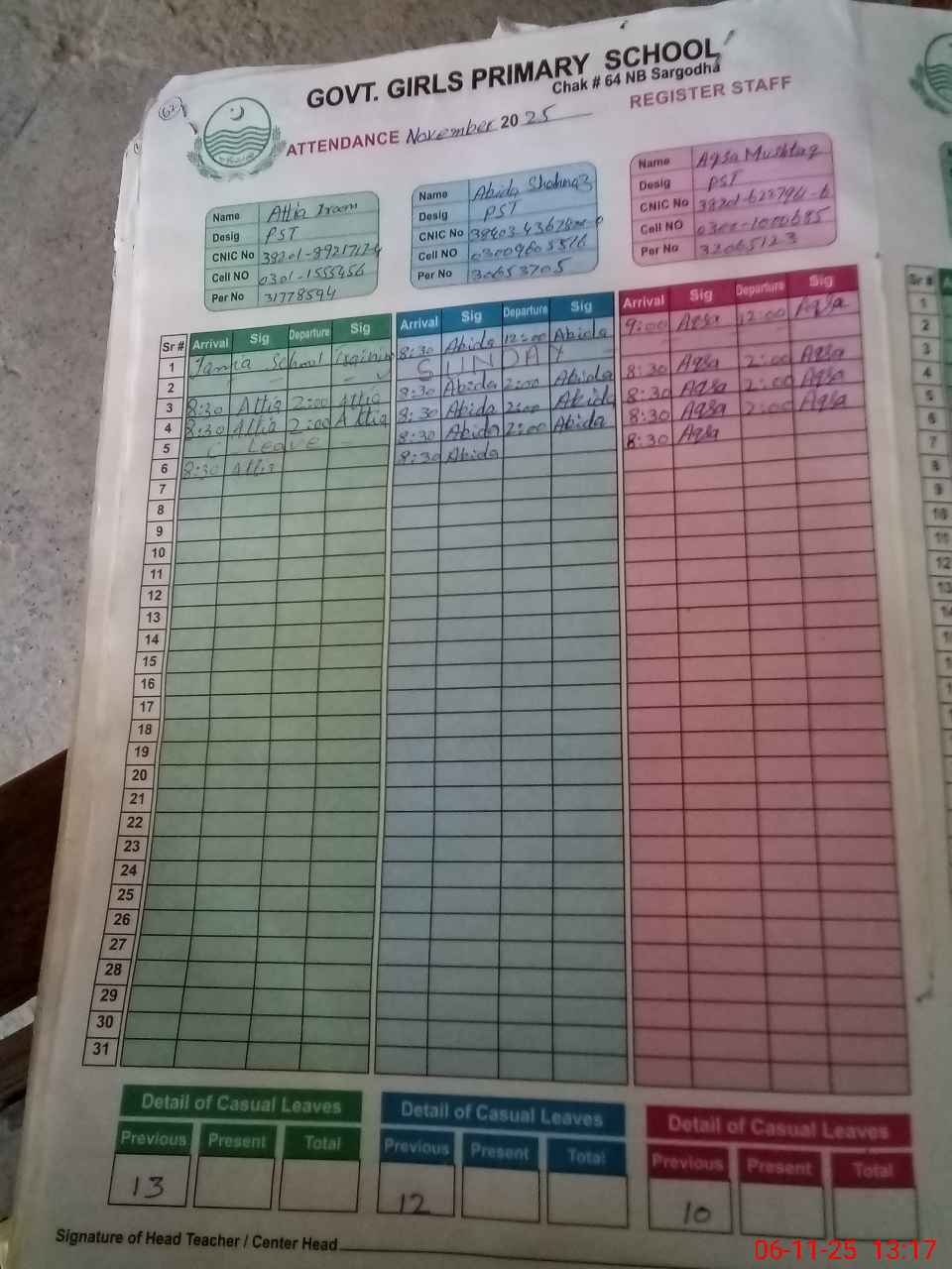 | Name: AT**** IR**** Designation: (School Headmaster's/Headmistress's) PST Phone/Cell Number: 03**** |