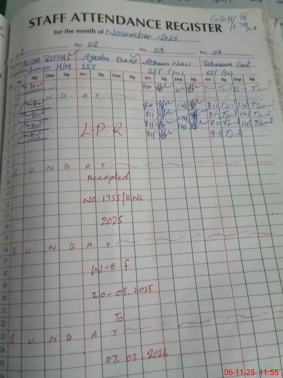 | CNIC | Full Name | Designation | R/C | Absence During Last Calender Month |