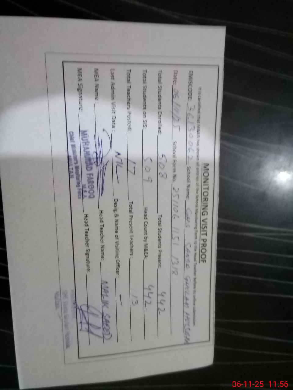 | EMIS Code: 36130062 | Name of School: GHS SANDA GHULLAM HUSSAIN | |||