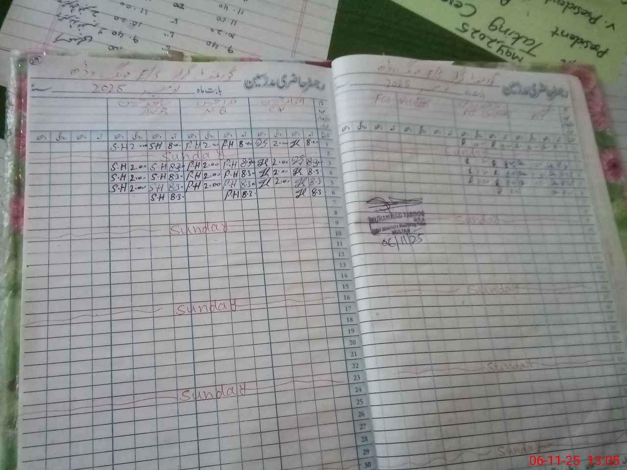 | CNIC | Full Name | Designation | R/C | Absence During Last Calender Month |