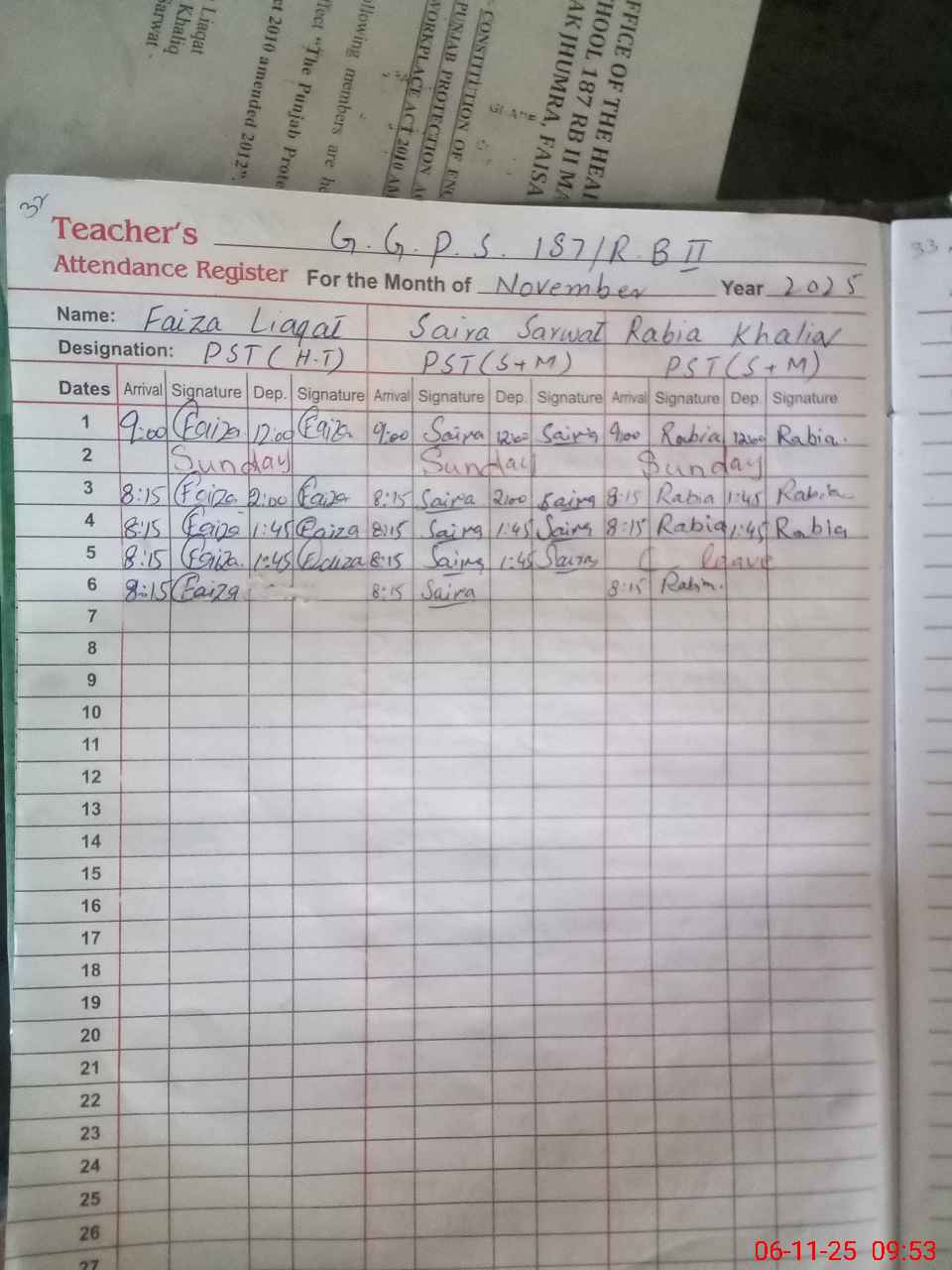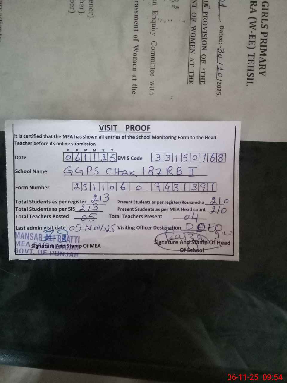 | Monitoring Date: 06-11-2025 | Start Time: 06-11-2025 09:17 AM | End Time: 06-11-2025 10:00 AM | Name of MEA: Ma**** Al**** | |