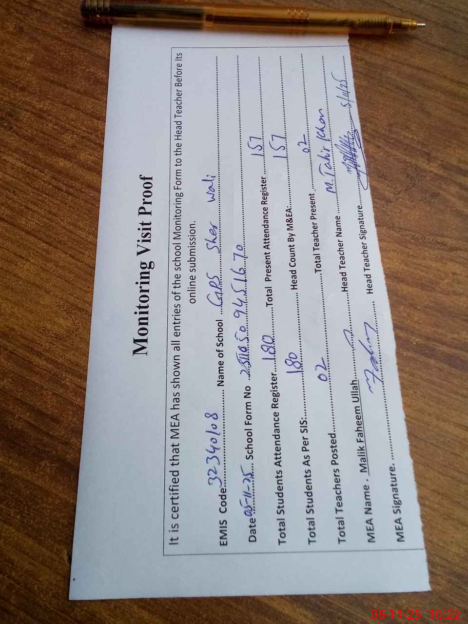 | EMIS Code: 32340108 | Name of School: GPS SHER WALI | |||