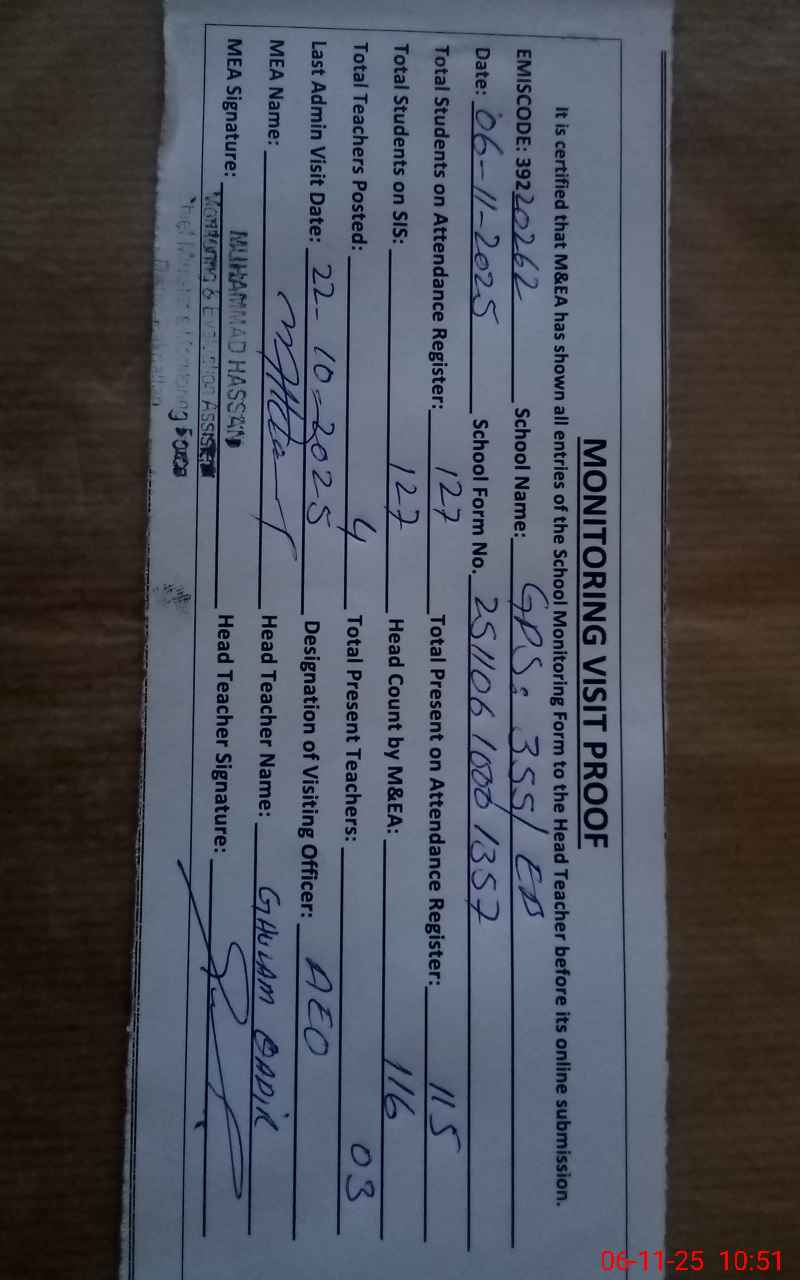 | EMIS Code: 39220262 | Name of School: GPS 355 EB P.O 351 EB | |||