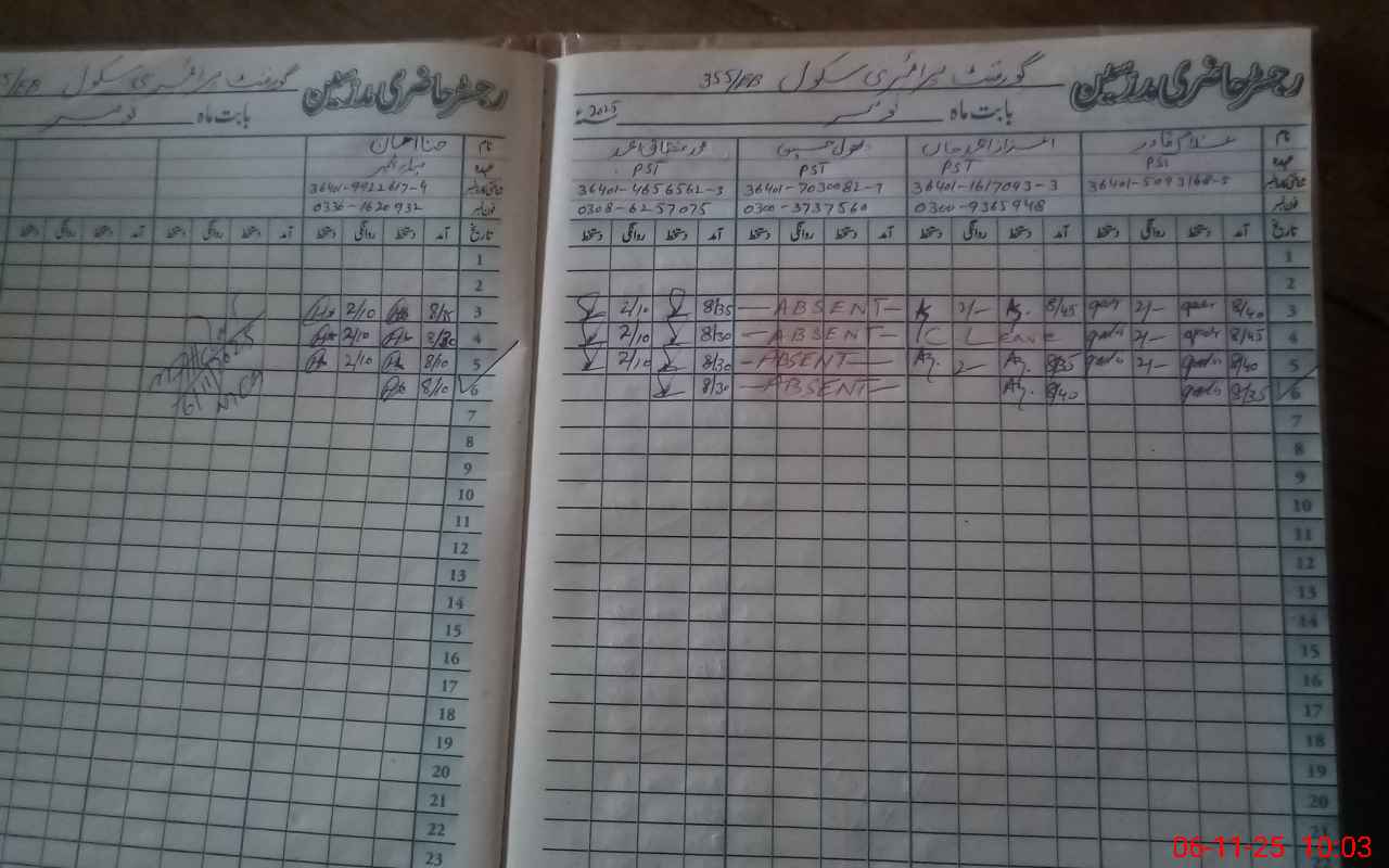 | CNIC | Full Name | Designation | R/C | Absence During Last Calender Month |
