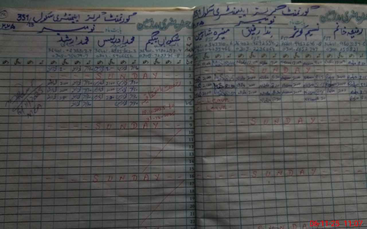 | CNIC | Full Name | Designation | R/C | Absence During Last Calender Month |