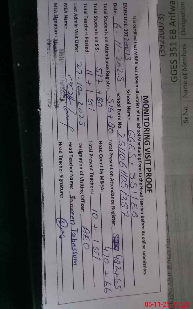 | EMIS Code: 39220073 | Name of School: GGES 351 EB | |||