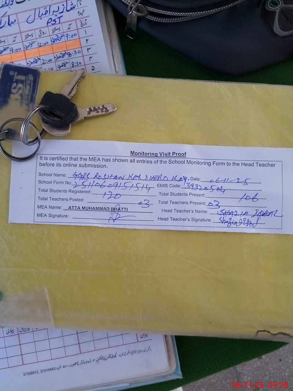 | EMIS Code: 39320504 | Name of School: GGPS ROSHAN KAY DHEERO KAY | |||