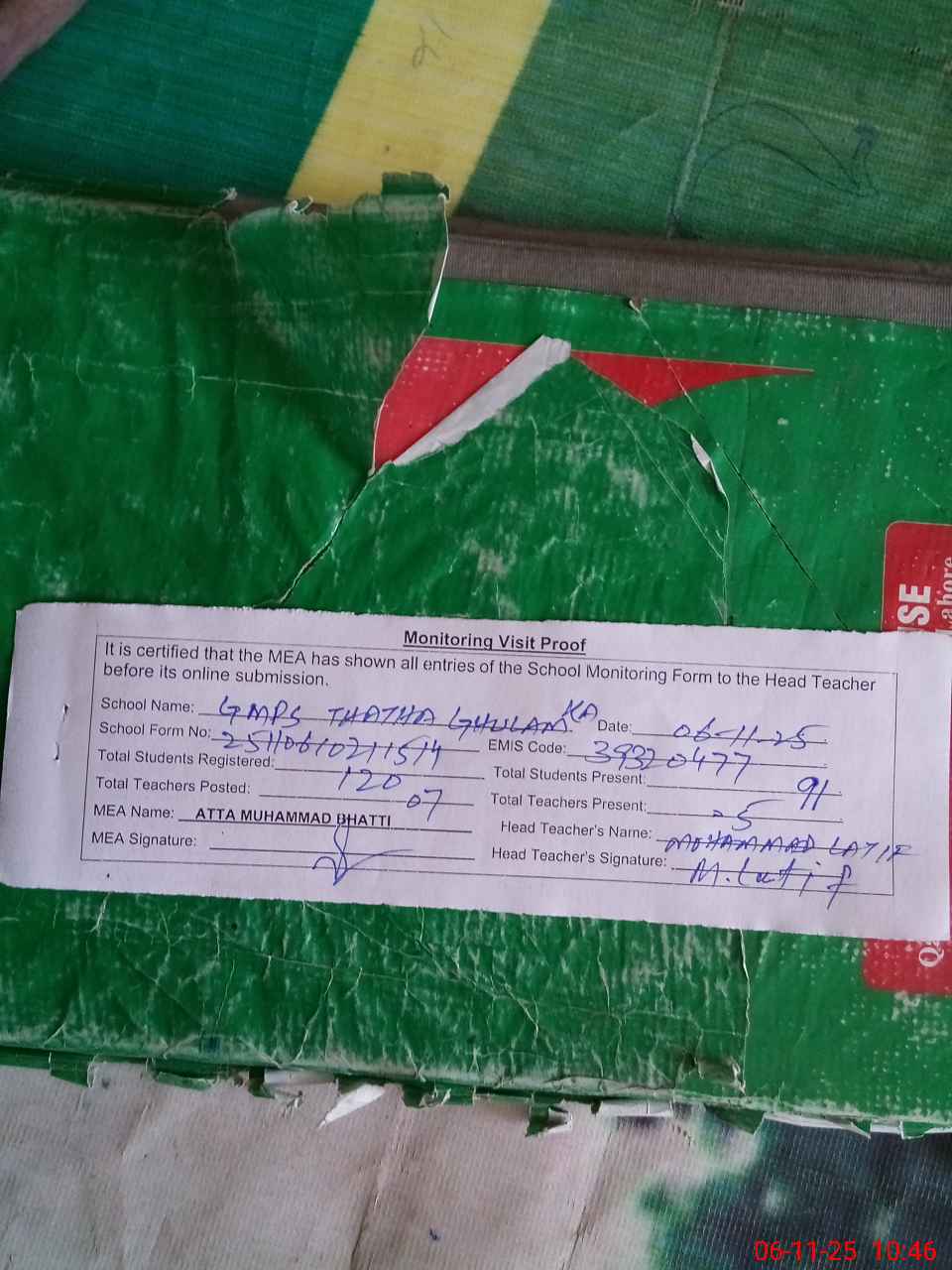 | EMIS Code: 39320477 | Name of School: GMPS THATHA GHULAM KAY | |||