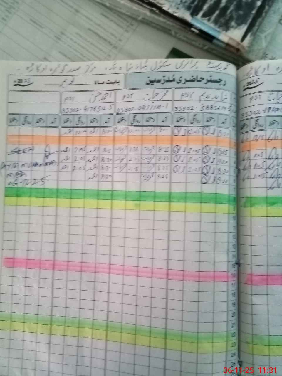 | CNIC | Full Name | Designation | R/C | Absence During Last Calender Month |