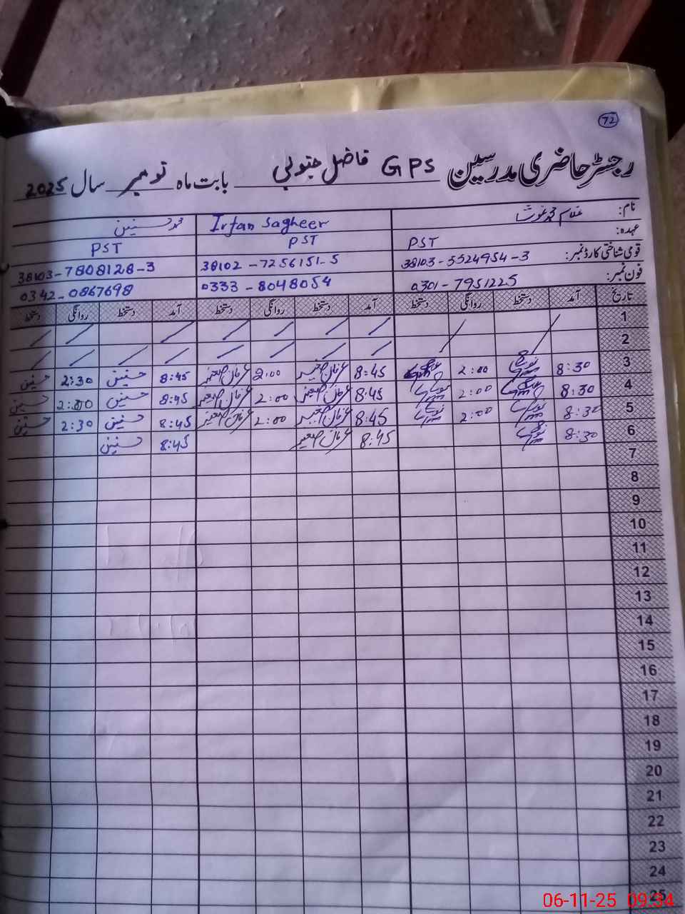 | Name: Gh**** Mu**** Gh**** Designation: (School Headmaster's/Headmistress's) PTC/JV Phone/Cell Number: 03**** |