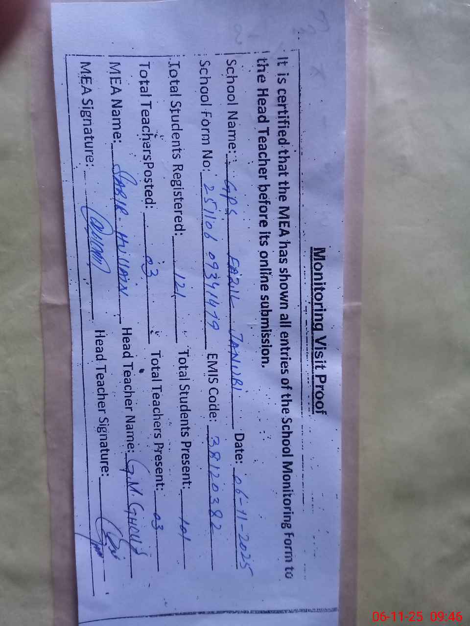 | EMIS Code: 38120382 | Name of School: GPS FAZIL JANUBI | |||