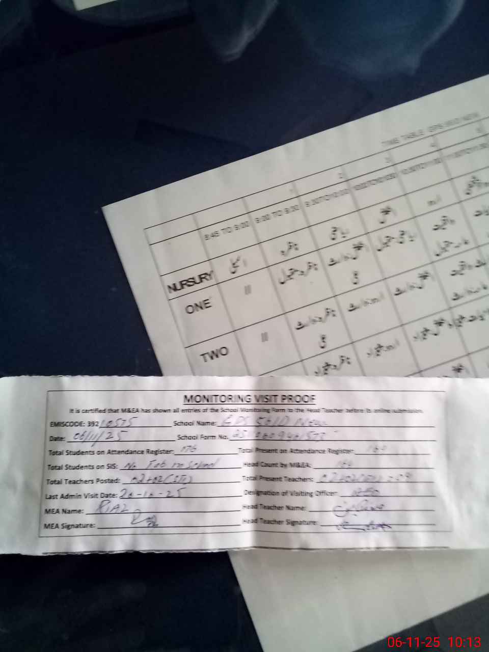 | Certified that this School was Inspected by the Undersigned MEA/DMO Today and the Information Stated Above is as Per Record. | |||||