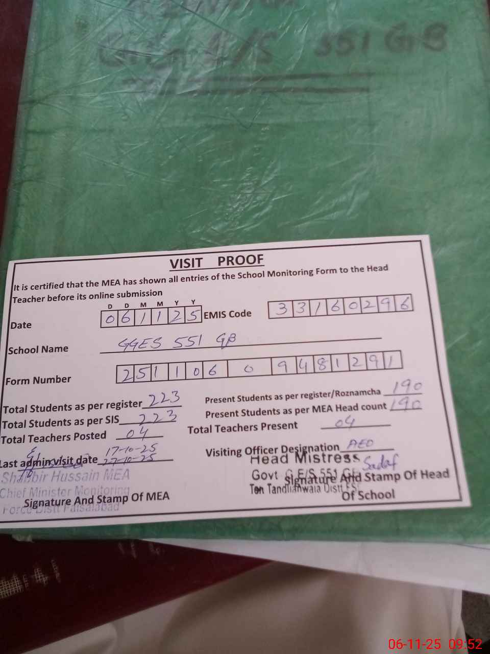 | EMIS Code: 33160296 | Name of School: GGES CHAK 551 GB MAMUNKANJAN | |||