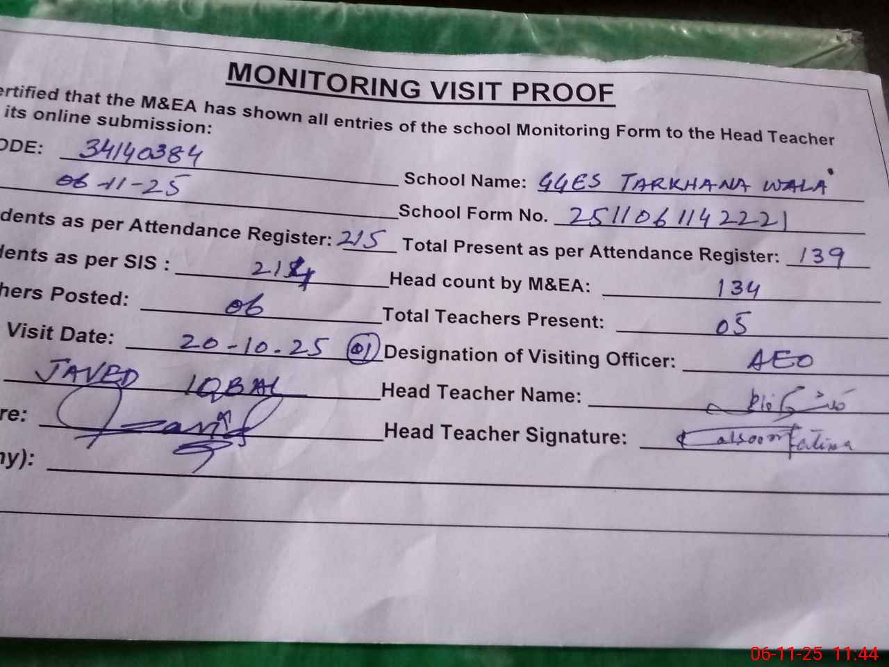 | EMIS Code: 34140384 | Name of School: GGES TARKHANA WALA | |||