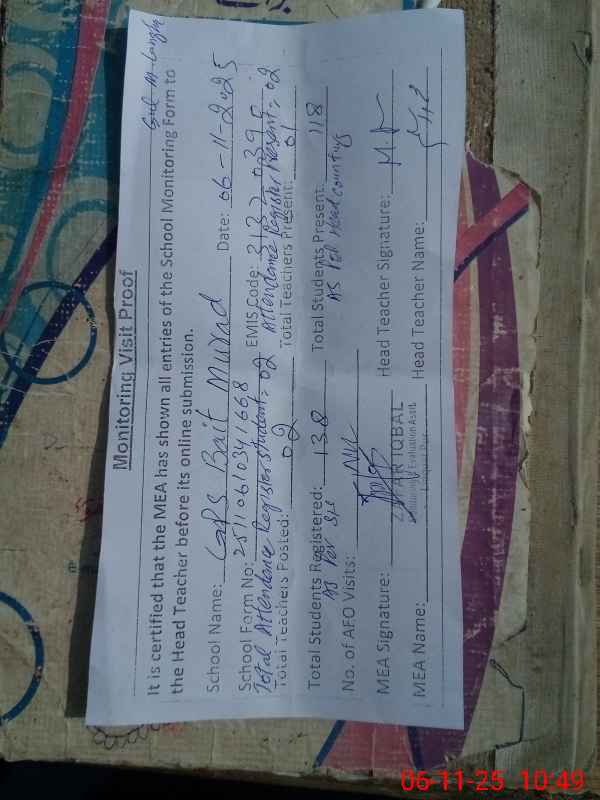 | EMIS Code: 31320390 | Name of School: GPS BAIT MURAD | |||