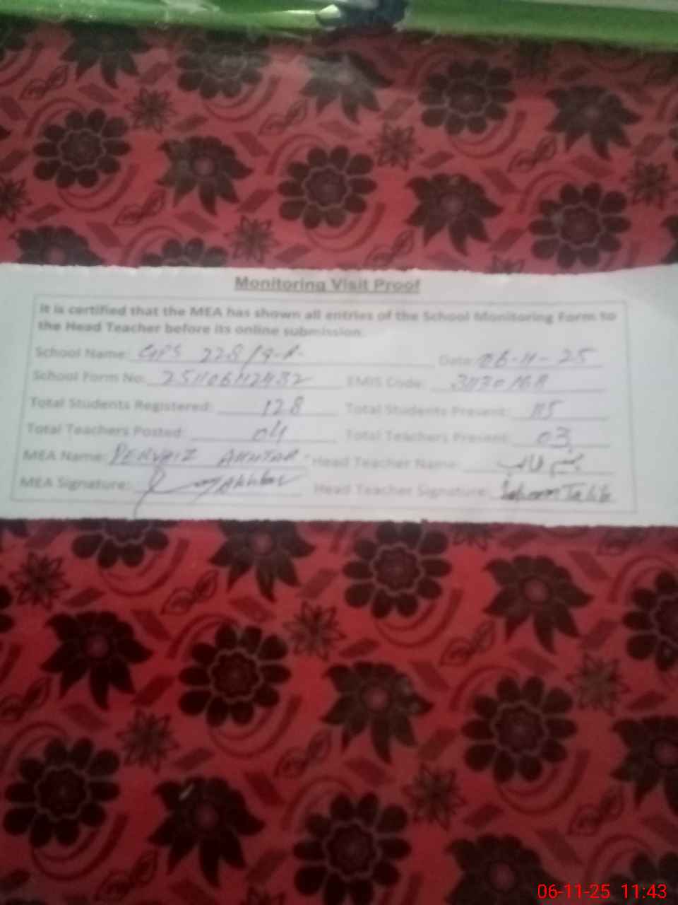 | EMIS Code: 31130168 | Name of School: GPS CHAK 228/9-R | |||