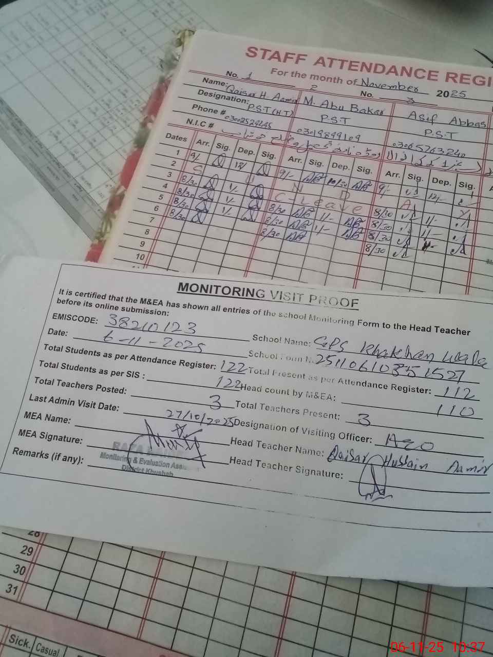 | EMIS Code: 38210123 | Name of School: GPS KHAKHAN WALA | |||
