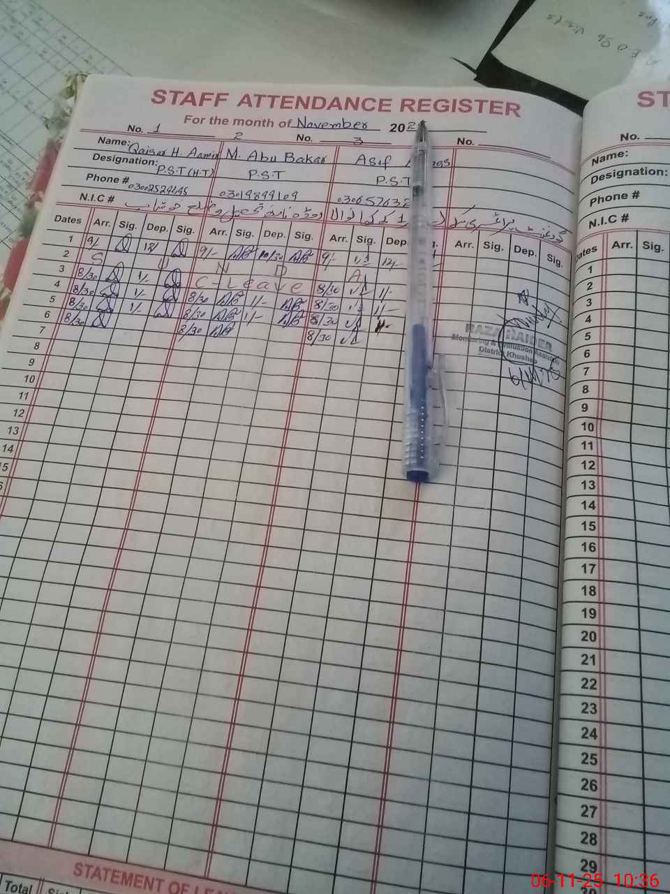| Name: Qa**** Hu**** Aa**** Designation: (School Headmaster's/Headmistress's) PST Phone/Cell Number: 03**** |