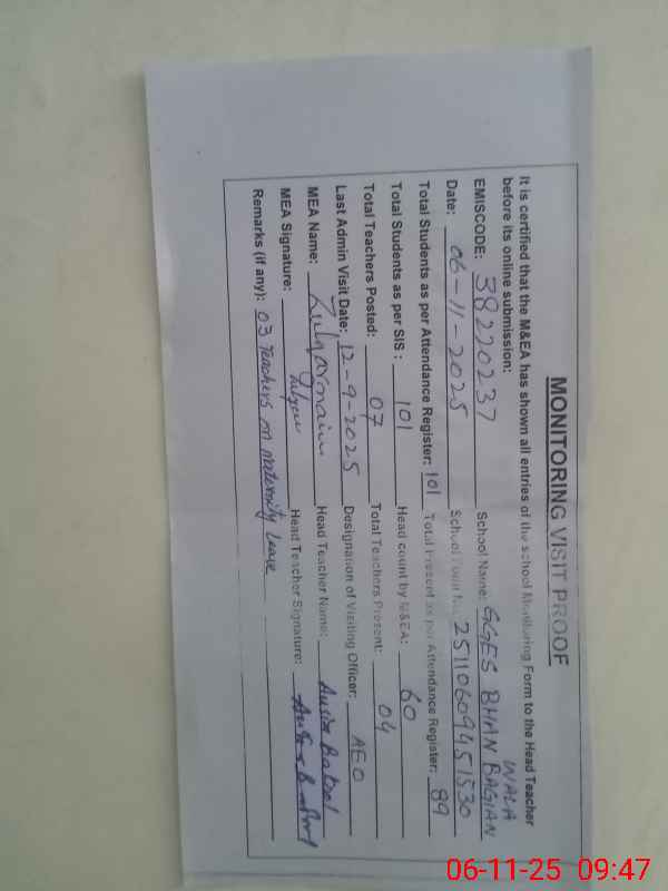 | EMIS Code: 38220237 | Name of School: GGES BHAN BAGIAN WALA | |||