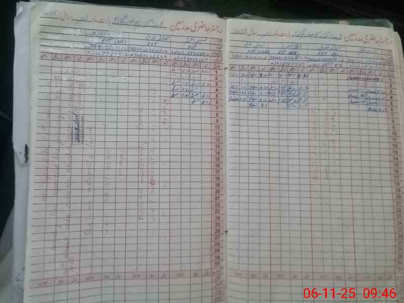 | CNIC | Full Name | Designation | R/C | Absence During Last Calender Month |