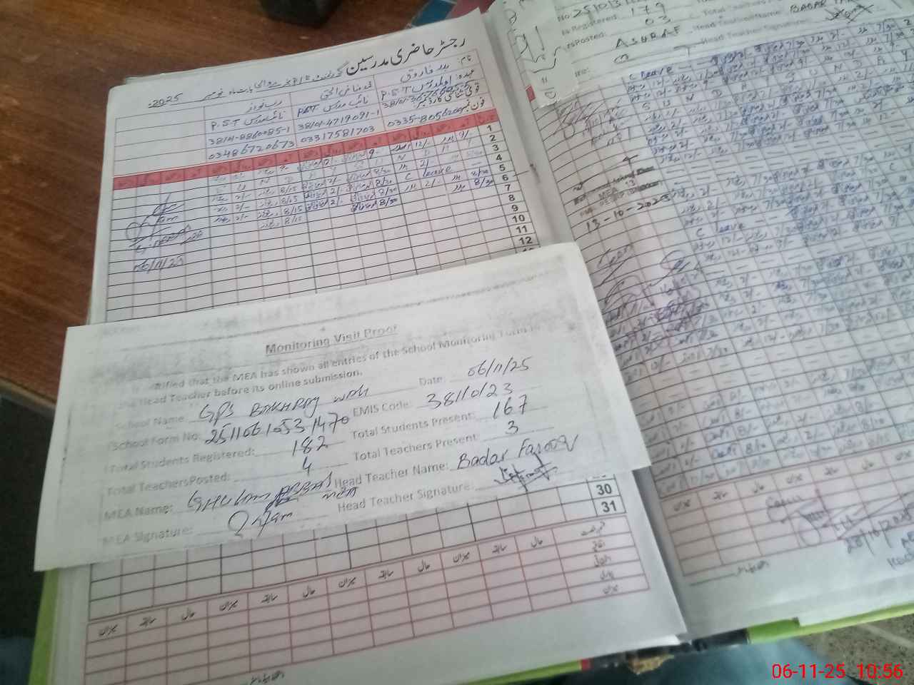| Attendance Register | Head Teacher | MEA with School | Visit Proof |
