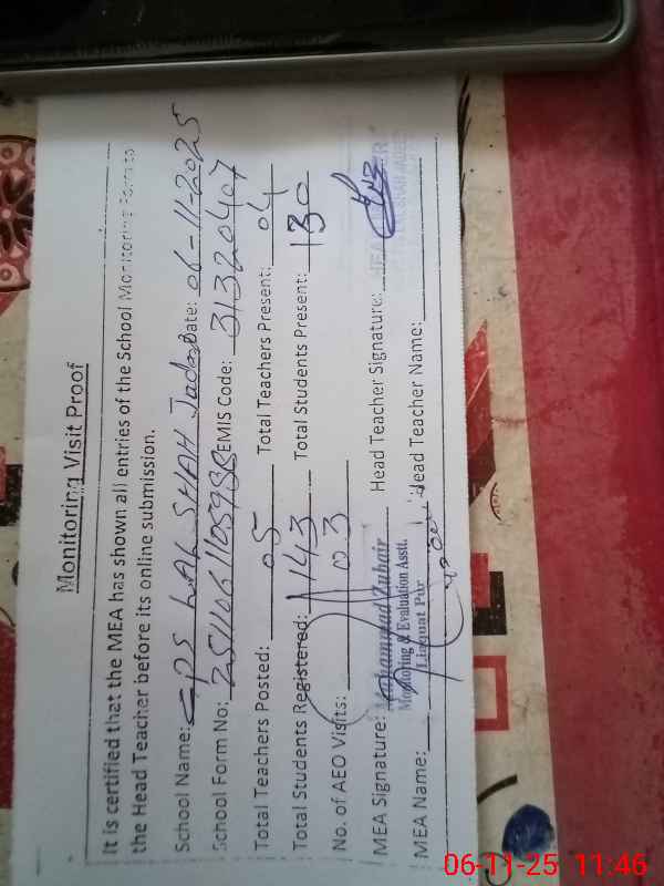 | EMIS Code: 31320407 | Name of School: GPS LAL SHAH JADEED | |||