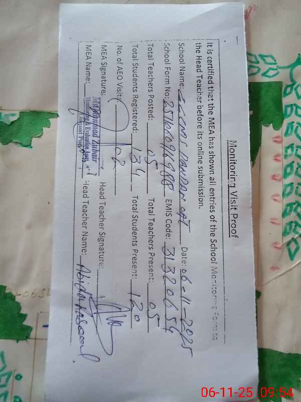 | Attendance Register | Head Teacher | MEA with School | Visit Proof |