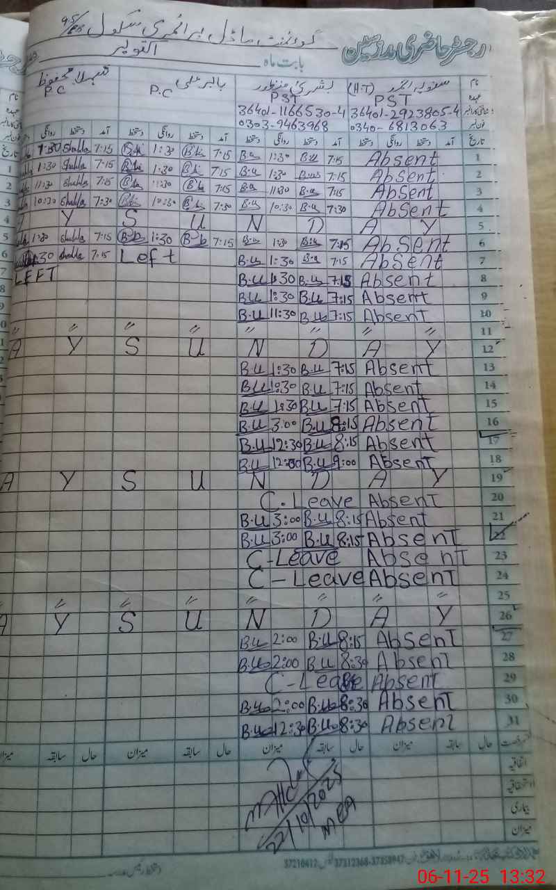 | Name: BU**** MA**** Designation: (School Headmaster's/Headmistress's) PST Phone/Cell Number: 03**** |