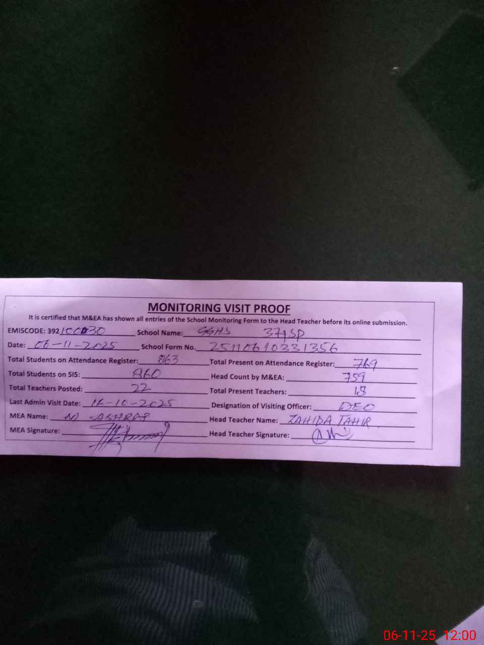 | EMIS Code: 39210030 | Name of School: GGHS 37 SP PAKPATTAN | |||