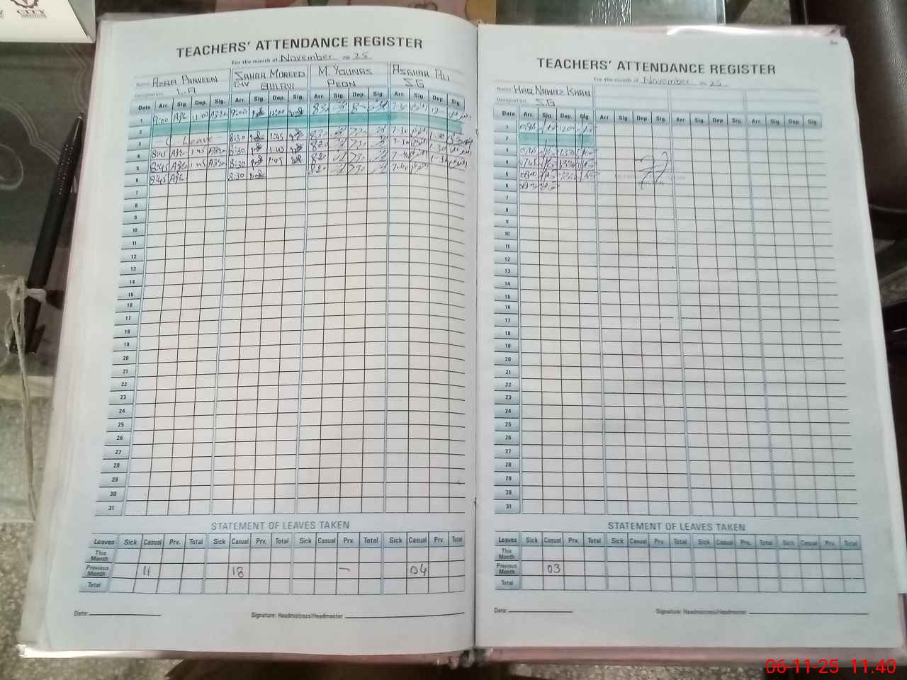 | Leave | Duty | Absent | Maternity | Medical | Ex- Pak |