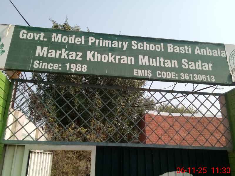 | EMIS Code: 36130613 | Name of School: GMPS BASTI ANBALA MULTAN | |||