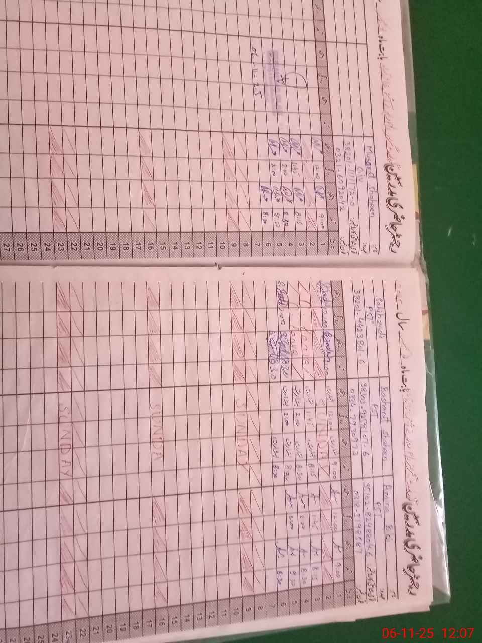 | CNIC | Full Name | Designation | R/C | Absence During Last Calender Month |